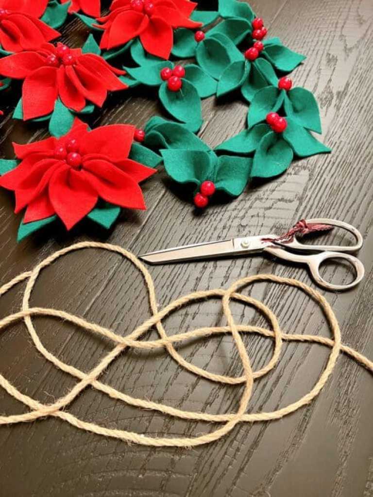 OK, full disclosure, I jumped into this project with only a vague idea of how I was going to make a poinsettia garland. I’m a “figure it out as you go” person and I’ve found I often work best this way. In fact, some of my best projects have been a result of me making it up as I went along. Also, it turns out I’m posting this on National Poinsettia Day! Who knew? Anyway let’s get to it. Here’s how I made this cute garland.